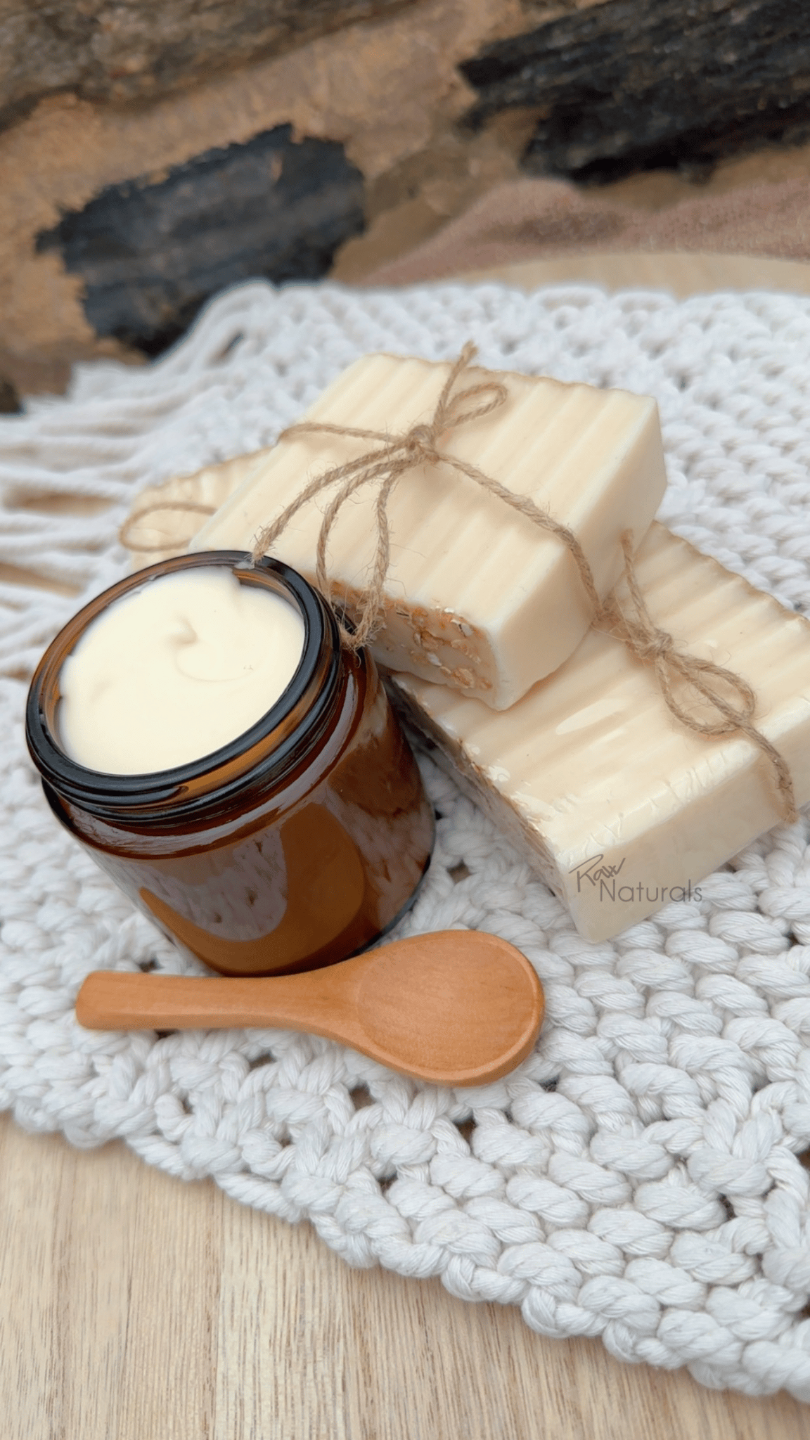 Experience the warmth of pure, simple care with our Goat Milk, Oats & Honey Cleansing Bar — a soothing blend crafted to comfort, nourish, and pamper even the most sensitive skin.