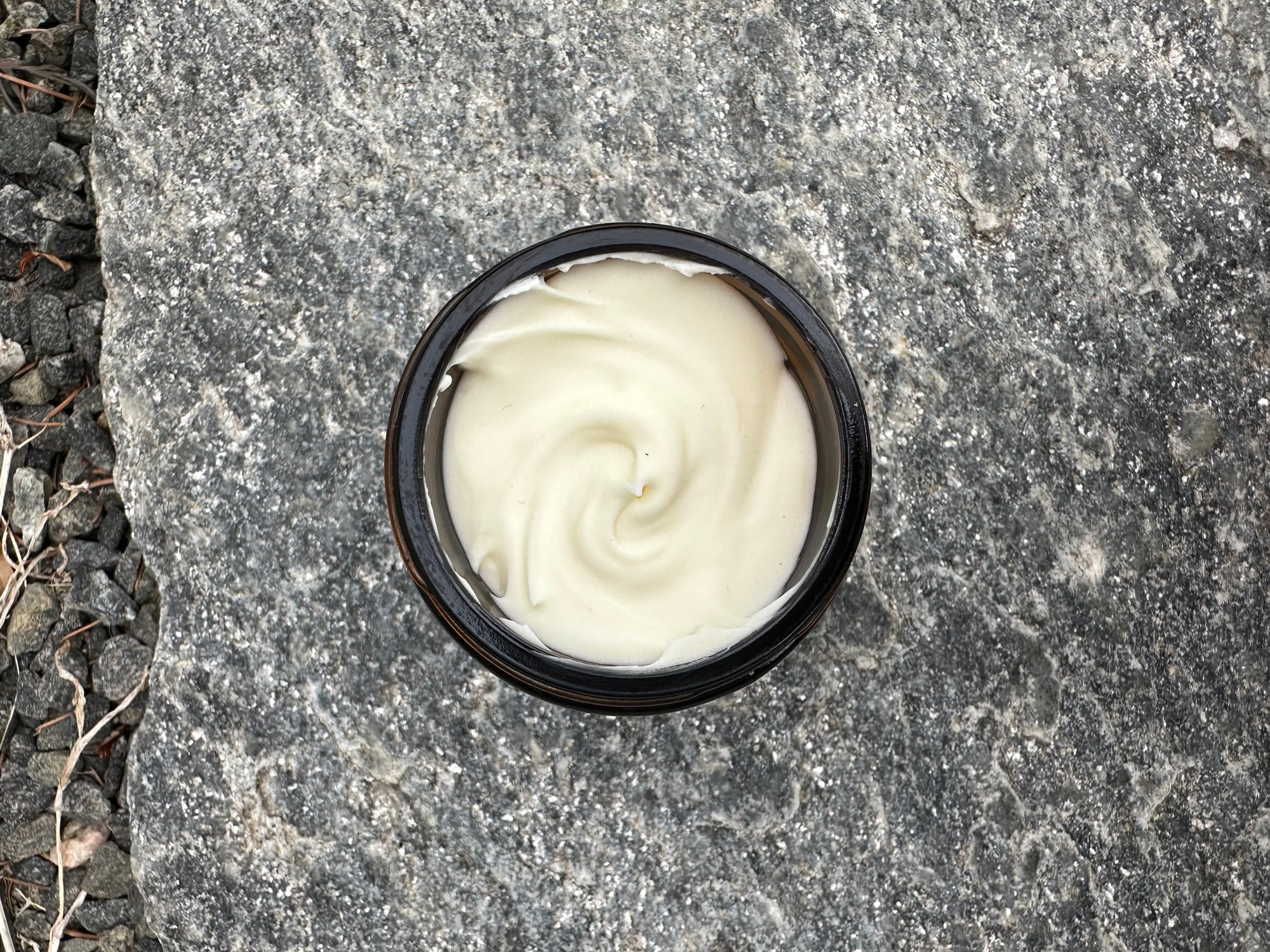 Scoop a small amount of body butter with wooden spoon. Warm it between your hands until it softens. Massage gently into dry or sensitive areas of the skin, such as elbows, knees, hands, or anywhere that needs extra hydration. Use daily or as needed to maintain soft, nourished skin.